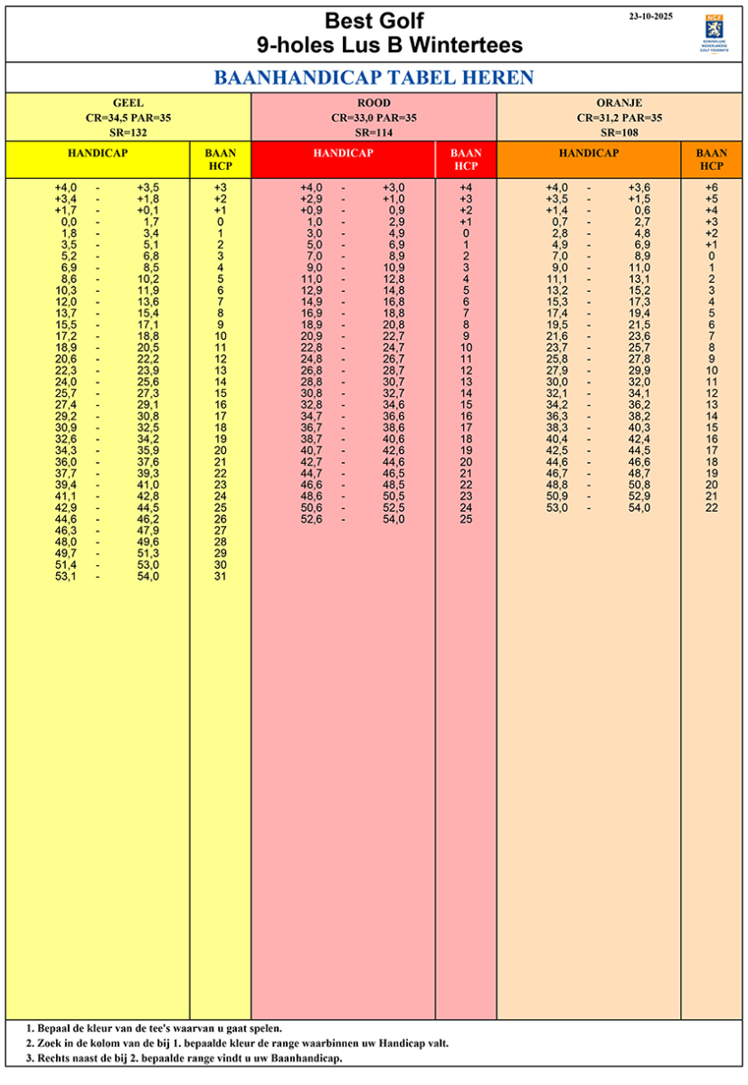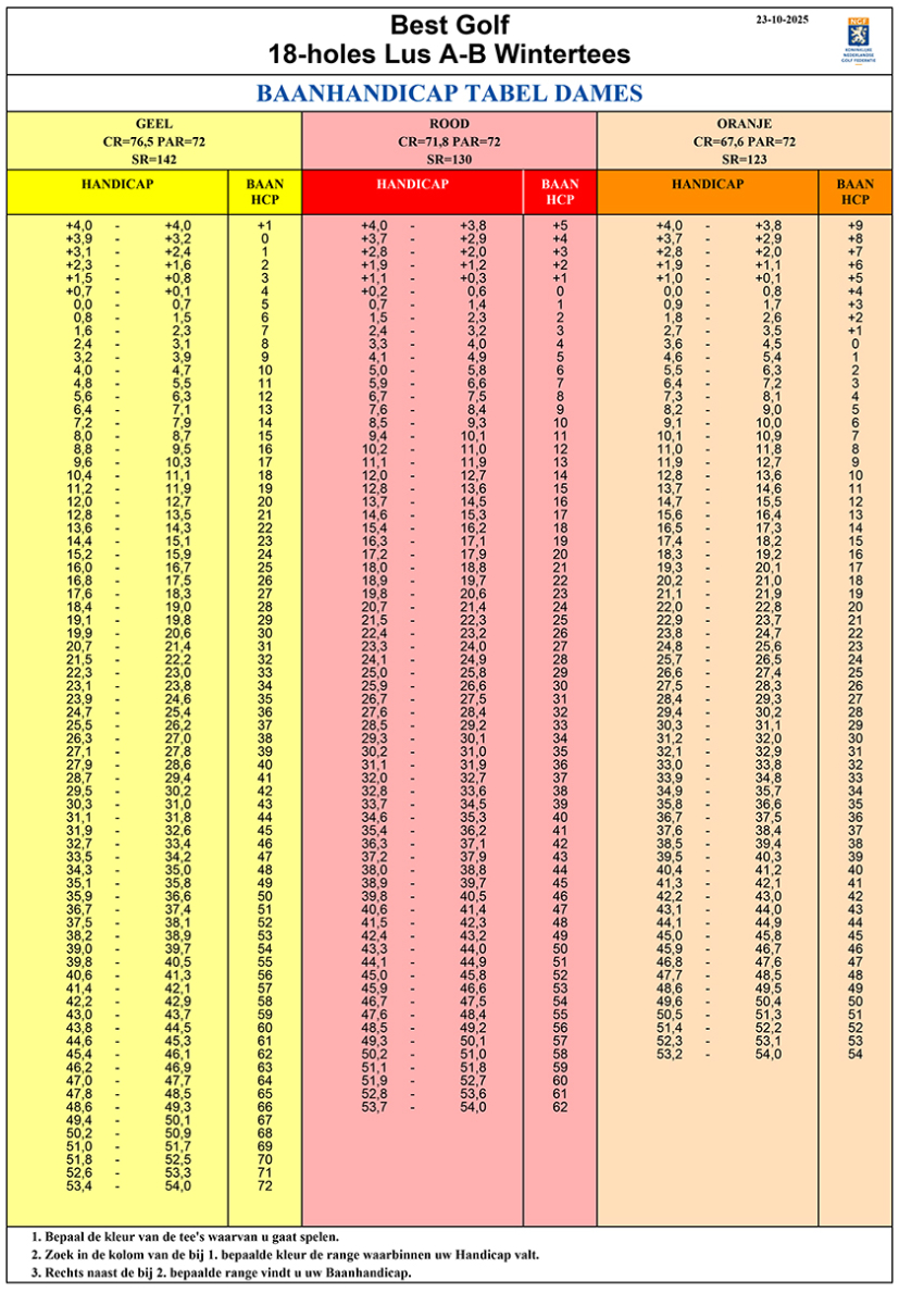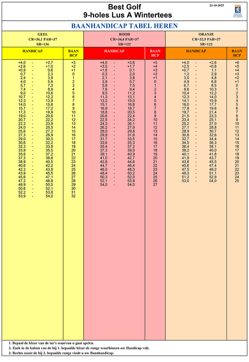 Tot medio maart 2026 spelen we WINTERTEES. Hiervoor heeft de golfbaan een aangepaste rating.